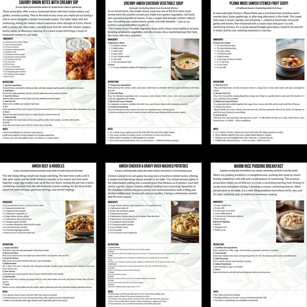 The Classic Amish Cookbook is a comprehensive digital collection of traditional Amish home cooking. With 500+ recipes across 500+ pages, this cookbook is designed as a practical, long-term kitchen reference focused on simplicity, consistency, and everyday meals made from accessible ingredients.